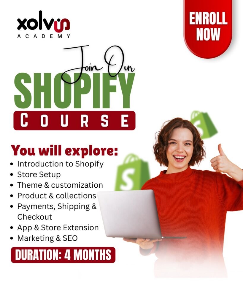If you’ve ever dreamed of launching your own eCommerce business, dropshipping brand, or online store — the Shopify Course in Karachi by Xolvin Academy is your first step toward success. This hands-on training program is designed for students, freelancers, and entrepreneurs who want to master the art of building, managing, and growing professional Shopify stores — without any coding knowledge.